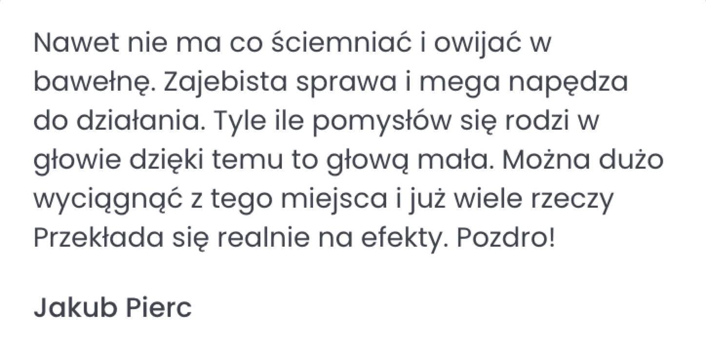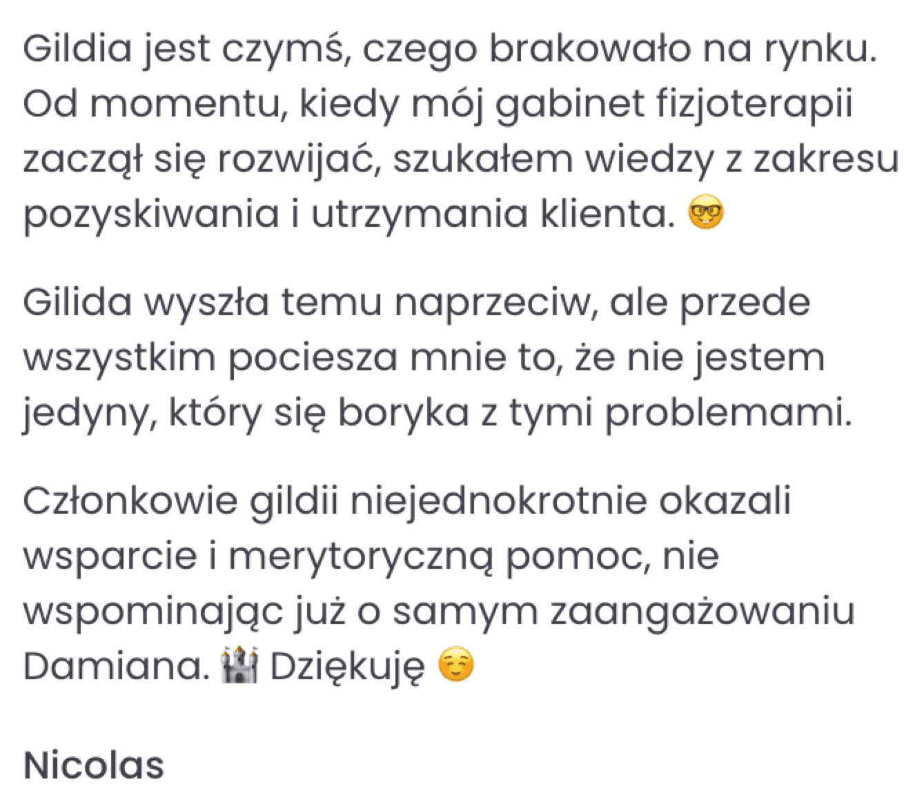 Będąc w Gildii Trenerów poczujesz się jakbyś miał mentoring z Damianem w cenie dostępu do społeczności 😁